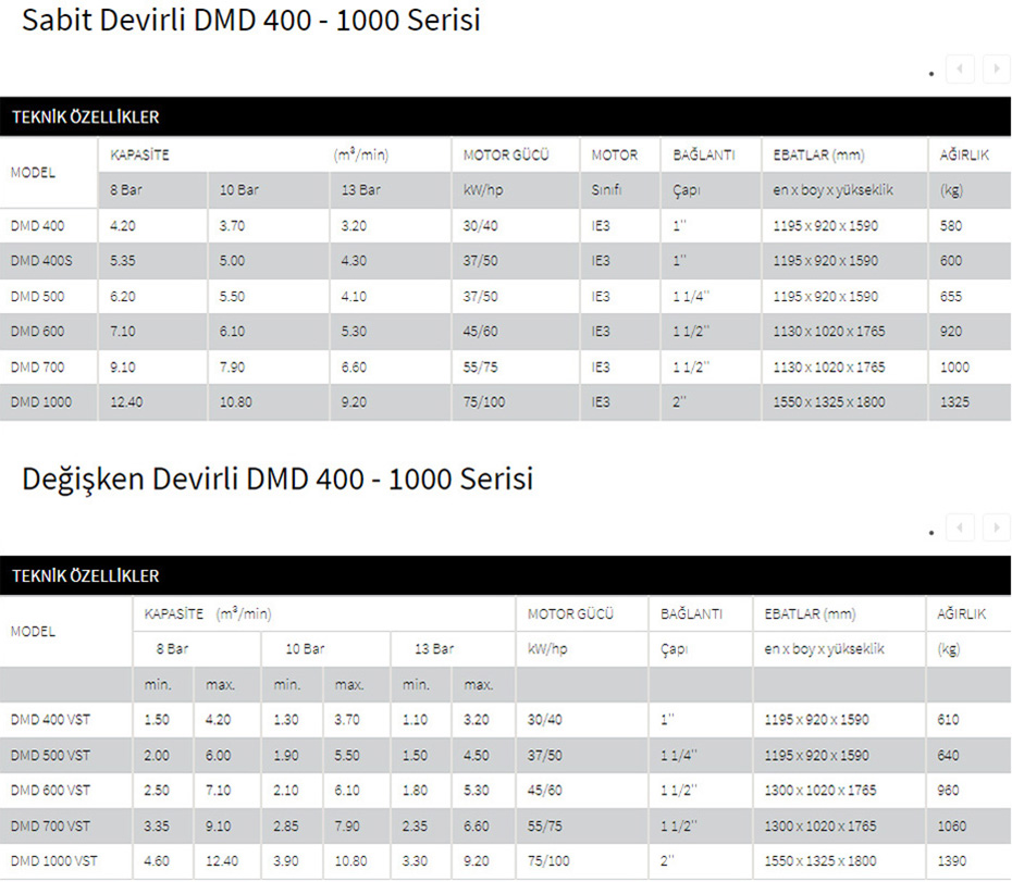 Ekomak DMD Serisi, günümüzün vidalı kompresör uygulamalarının öngördüğü bütün olanakları karşılamak için en son teknolojilere sahiptir. DMD Serisi kompresörlerimiz ile, Ekomak'tan beklediğiniz tüm güvenilirliği sunabilmekteyiz. Birçok özelliği, standart opsiyonları ve kendi küçük, avantajları büyük kayışlı güç aktarımlı kompresörler ile DMD Serisi, küçük ve orta boy işletmelerin yapısına uyacak şekilde tasarlanmıştır.
